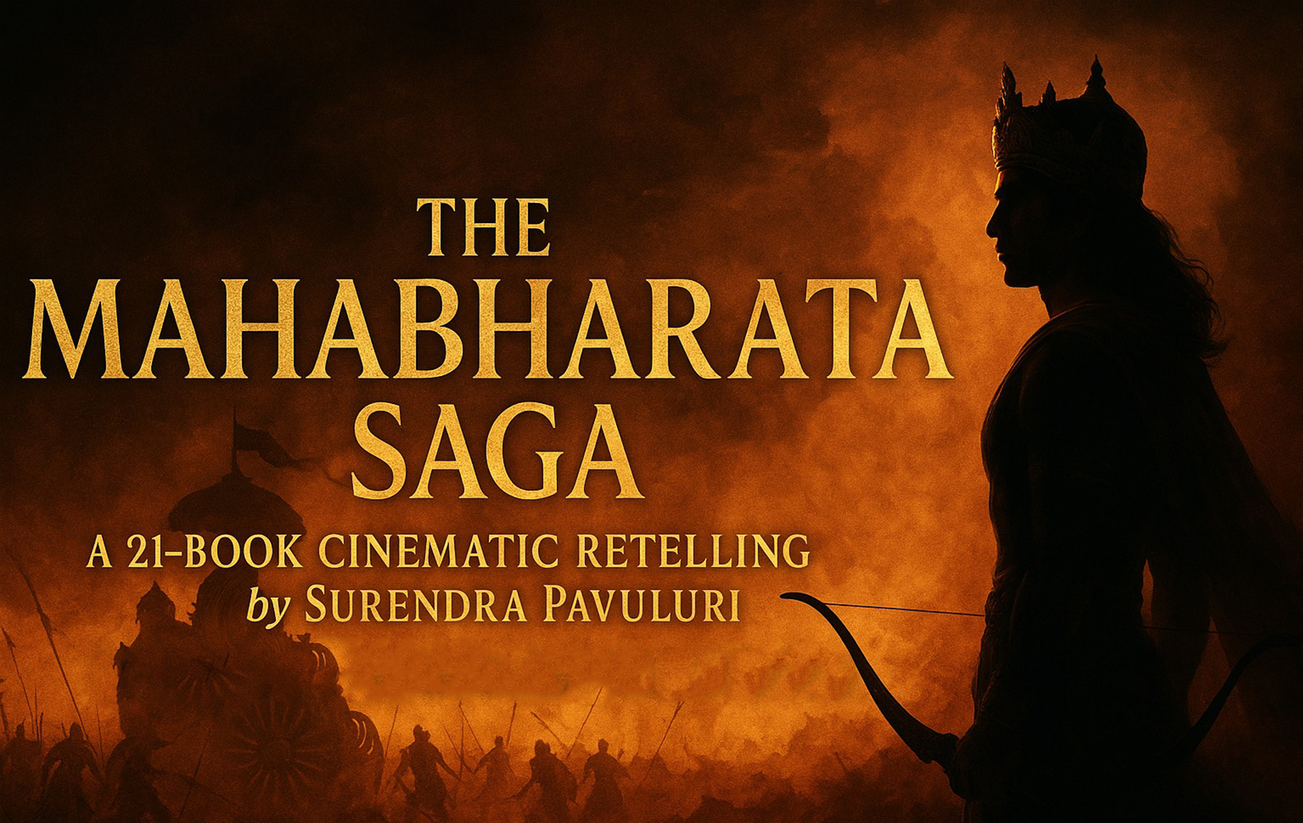Surendra Pavuluri is the creator of The Mahabharata Saga — a cinematic 21-book retelling of India’s greatest epic. His work blends mythic fiction, epic fantasy, and timeless Indian philosophy to bring ancient stories to modern readers. Through his writing, Surendra reimagines the Mahabharata as a living universe of characters, emotions, and destinies.